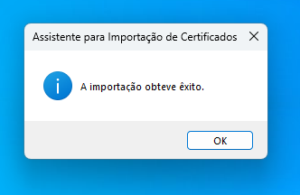 Clique em concluir para o seu certificado ser importado para o repositório de certificados do Windows.